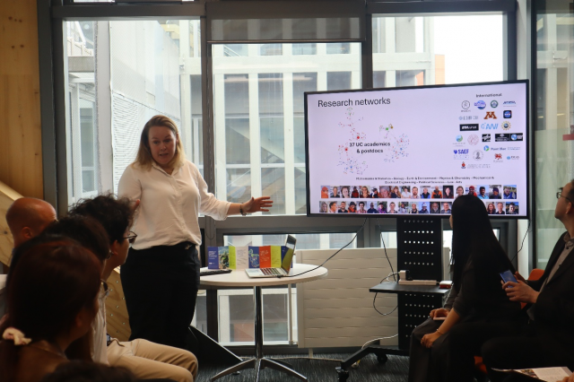 坎特伯雷大学地球与环境学院为武汉大学师生准备了早茶交流会,武大师生与地球与环境学院教师以及来自新西兰、法国、斯里兰卡等多国的研究生代表开展交流。双方围绕校园生活、教育模式、青年成长等内容展开讨论,介绍各自院校的专业设置、实践教学与科研竞赛等情况。