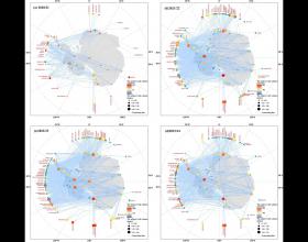 武汉大学中国南极测绘研究中心创新性地开展了南极航空网络及其全球连接性的相关研究。研究整合了2020年至2024年间在该区域运行的86架飞行器数据,南极大陆的80条跑道数据,以及全球216个国家和地区的机场数据,绘制了南极飞行器的飞行轨迹图。基于这些数据,研究进一步解析了南极航空网络结构、南极机场跑道与其他大陆之间的航空连接情况,并精确统计了南极飞行器对全球机场的访问频率。此外,研究还探讨了新冠疫情背景下航空连接对南极的影响,指出航空连接在为科考提供快捷通道的同时,也可能成为病毒传播的潜在加速器。相关成果已经发表在国际知名期刊《International Journal of Digital Earth》,硕士研究生金雅璇为论文第一作者,艾松涛教授为论文通讯作者。